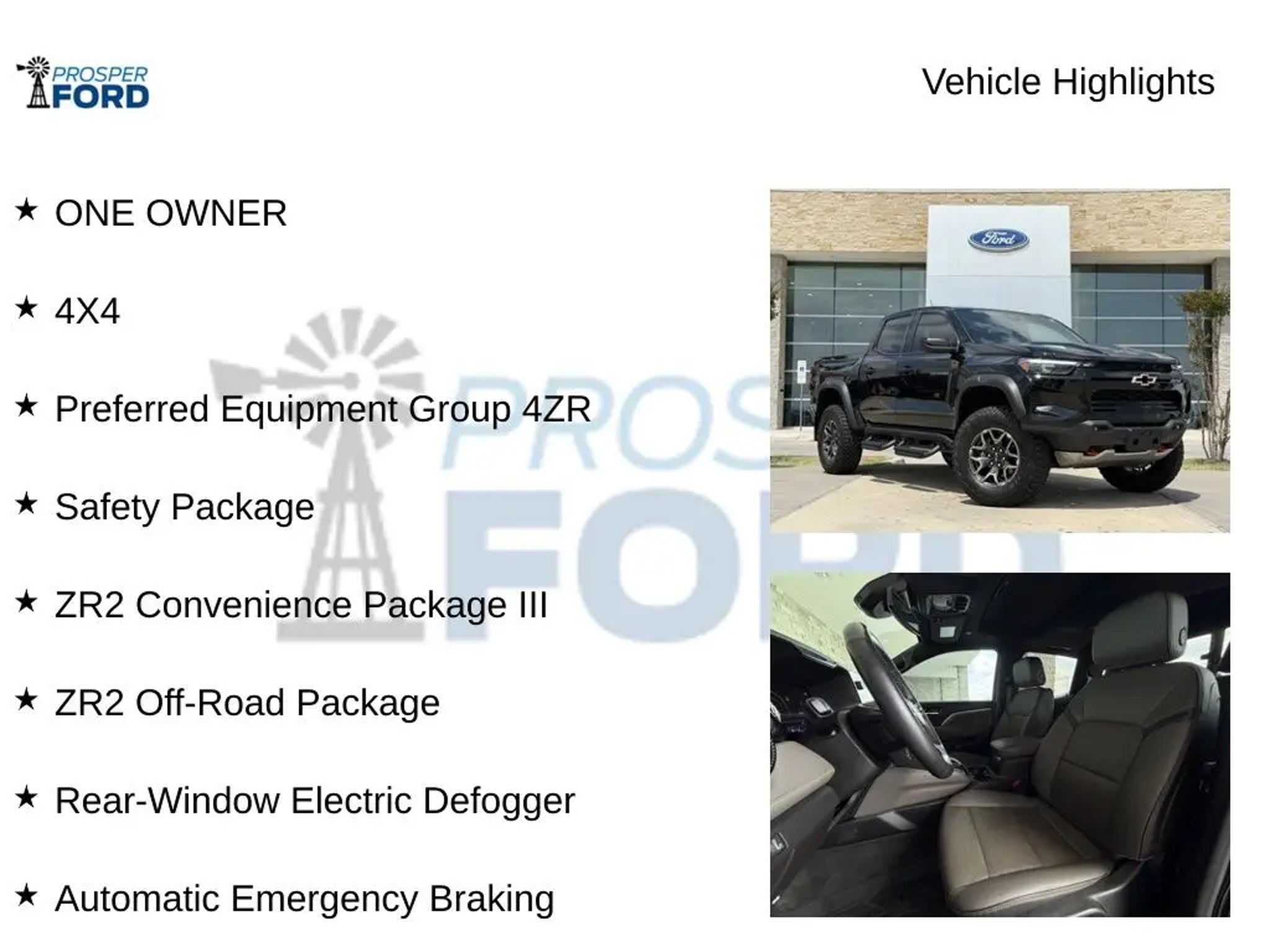 Discover the ultimate off-road companion in the 2023 Chevrolet Colorado ZR2. This rugged and capable pickup is designed to conquer any terrain, offering unparalleled performance and a wealth of premium features to elevate your driving experience. - ONE OWNER - 4X4 - Perforated Leather-Appointed Seating - Bose Premium 7-Speaker Audio System - Wireless Charging - Heated Steering Wheel - Ventilated Front Seats - Driver Memory Settings - Rear Cross Traffic Braking - Automatic Emergency Braking - Chevy Safety Assist Powered by a 2.7L Turbo engine mated to an 8-speed automatic transmission, the Colorado ZR2 delivers impressive power and efficiency, with an EPA-estimated 17 city/19 highway MPG. Its four-wheel-drive system and off-road-tuned suspension make it a true force to be reckoned with, whether you're tackling the daily commute or exploring the great outdoors. Elevate your driving experience with the ZR2's comprehensive suite of premium features. The Bose Premium 7-speaker audio system and wireless charging pad ensure your connectivity and entertainment needs are seamlessly met. Enjoy the convenience of the power sliding glass sunroof, the comfort of ventilated front seats, and the added safety of Chevy's advanced driver assistance technologies, including Automatic Emergency Braking and Rear Cross Traffic Braking. This Colorado ZR2 also boasts the ZR2 Convenience Package III, which includes a host of desirable features such as perforated leather-appointed seating, a heated steering wheel, and driver memory settings. The ZR2 Off-Road Package and Safety Package further enhance the vehicle's capabilities and your peace of mind. Experience the uncompromising power, capability, and premium features of the 2023 Chevrolet Colorado ZR2. This exceptional pickup is ready to elevate your driving experience and conquer any adventure that lies ahead. Contact us today to schedule a test drive and discover the true essence of off-road excellence.