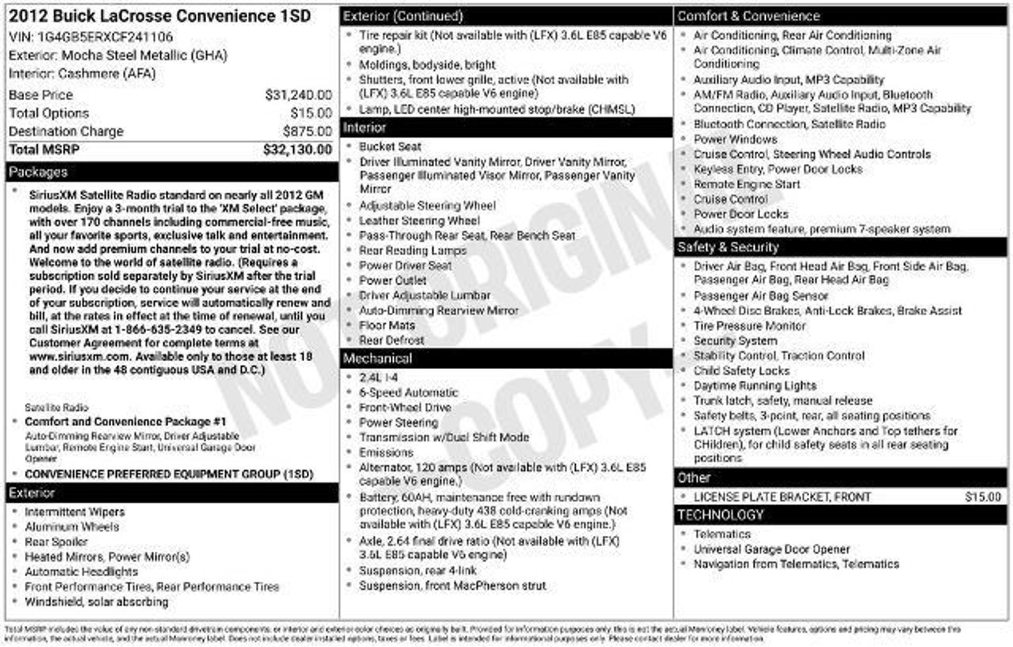 Details > 2012 Buick Lacrosse Convenience 4DR Sedan For Sale in Guttenberg, IA Private Party Sellers Click here to place your ad now! You auta tell them you saw the ad in AutaBuy when you call or email. 1/32 2/32 3/32 4/32 5/32 6/32 7/32 8/32 9/32 10/32 11/32 12/32 13/32 14/32 15/32 16/32 17/32 18/32 19/32 20/32 21/32 22/32 23/32 24/32 25/32 26/32 27/32 28/32 29/32 30/32 31/32 32/32 View 32 Photos View All Add to My Garage Parked in Your Garage! Brown's Sales & Leasing, Inc. Contact Seller: I would like to: Make Offer Check Availability Ask A Question Request More Photos Check Financing Options Send a copy of this message to me Add this listing to my garage Send to Mobile Mileage 75,299 Exterior Color Mocha Steel Metallic Interior Color Cashmere Doors 4 Engine 2.4L I4 Transmission 6 Speed Auto Stock # GR466B Ad ID 108960407 VIN 1G4GB5ERXCF241106 Estimated Monthly Payment $142 mo Apply Now J.J. Best Banc & Co. 2012 Buick Lacrosse Convenience 4DR Sedan Description: · Mileage: 75,299 · Color: Mocha Steel Metallic Price: $8,170. Mileage 75,299 Exterior Color Mocha Steel Metallic Interior Color Cashmere Doors 4 Engine 2.4L I4 Transmission 6 Speed Auto Stock # GR466B Ad ID 108960407 VIN 1G4GB5ERXCF241106 Estimated Monthly Payment $142 mo Apply Now J.J. Best Banc & Co. Add to My Garage Parked in Your Garage! Message Seller Brown's Sales & Leasing, Inc. Contact Seller: I would like to: Make Offer Check Availability Ask A Question Request More Photos Check Financing Options Send a copy of this message to me Add this listing to my garage Offered for sale by Brown's Sales & Leasing, Inc. GUTTENBERG, IA Price: $8,170. Offered for sale by Brown's Sales & Leasing, Inc. GUTTENBERG, IA [entire inventory] Ask Auta Intelligence The first collector-car AI built directly into a classic car marketplace What does this VIN number tell me? What factory options were available on this model? What trim levels were available for this model? Can you show me more cars for a similar price? How easy are parts to find for this model? What engine options did these come with? Tell me more about this model What colors did these come in? How many of these were produced? Where is this located? How far is this from me? What kind of mileage do these get? What transmission options did these offer? How many Lacrosses were produced in Mocha Steel Metallic? When was this model first introduced? Do you have a similar car to sell? List It Now! Questions about this car? Ask Auta Intelligence for production numbers, available options, etc. · Subscribe to AutaBuy! · Send a Gift Subscription Notice to a Friend