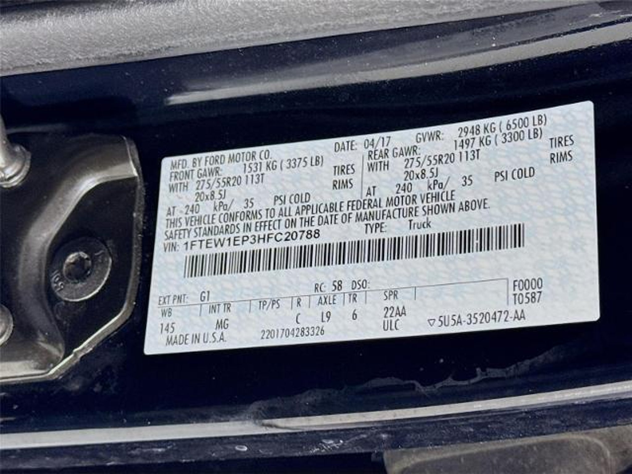 VIN 1FTEW1EP3HFC20788