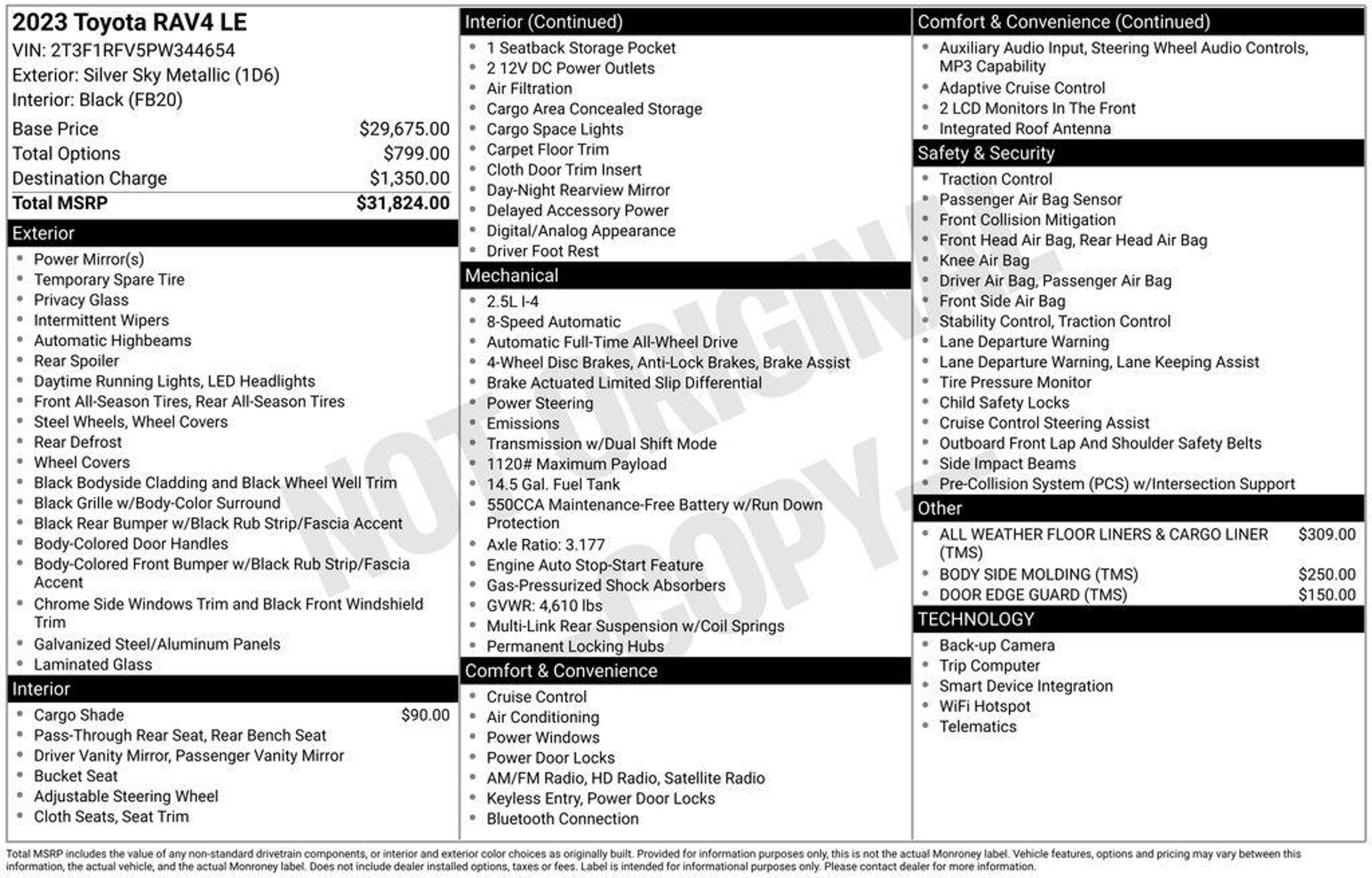 Now Available: Affordable Pre-Owned Silver Sky Metallic 2023 Toyota RAV4 LE with 77350 miles at Rapids Honda! This well-equipped used 2023 Toyota RAV4 LE offers AWD traction, a 2.5L 4-Cylinder DOHC Dual VVT-i engine with 8-Speed Automatic, and fuel efficiency rated at 27 MPG city / 34 MPG highway / 30 MPG combined. Standout features include Backup Camera and Bluetooth Pairing, All Weather Floor Liners & Cargo Liner (TMS), Body Side Molding (TMS), Door Edge Guard (TMS), Radio: AM/FM/XM Audio System, and Rear Cargo Area Cover making it ready for its next adventure. Vehicles are inspected, detailed, and come with a vehicle history report. Available on select pre-owned vehicles at Rapids Honda (see salesperson for details and eligibility requirements), The Rapids Advantage includes a 6-month/6,000-mile Powertrain Warranty covering the engine, EV battery, transmission, and drivetrain, plus $200 deductible protection. You'll also receive Lifetime Car Washes, Lifetime Windshield Repellency, Lifetime Shuttle Service, and Auto Butler Environmental Protection, giving you lasting value beyond your purchase. Visit us at 1950 Gateway Dr NW off Hwy 10 & Hanson Blvd in Coon Rapids, MN, or call us at . Open Monday-Saturday.