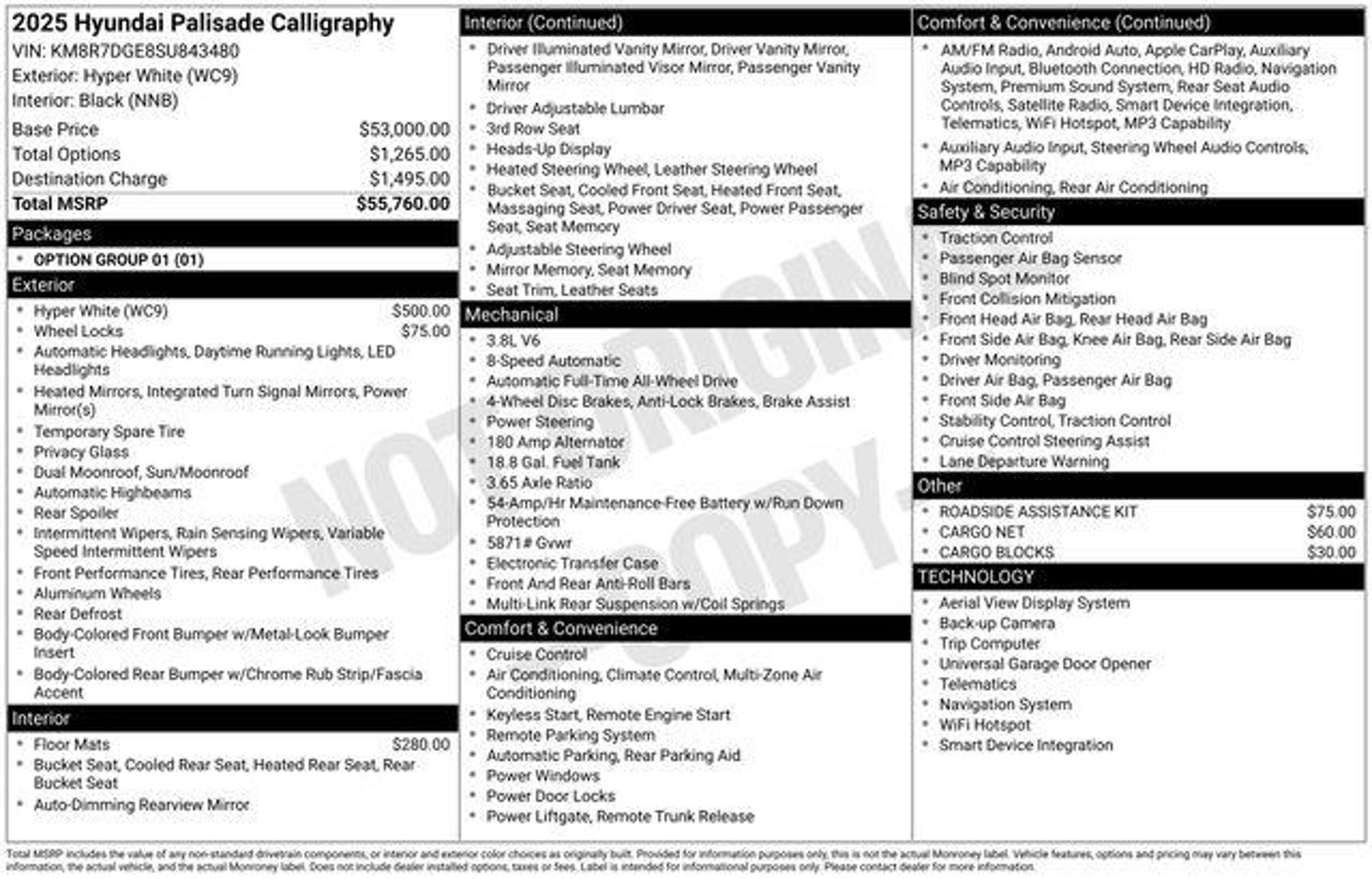Details > 2025 Hyundai Palisade AWD Calligraphy 4DR SUV For Sale in Somersworth, NH Private Party Sellers Click here to place your ad now! You auta tell them you saw the ad in AutaBuy when you call or email. 1/3 2/3 3/3 View 3 Photos View All Add to My Garage Parked in Your Garage! Granite Hyundai Contact Seller: I would like to: Make Offer Check Availability Ask A Question Request More Photos Check Financing Options Send a copy of this message to me Add this listing to my garage Send to Mobile Mileage 3,811 Exterior Color White Interior Color Black Doors 4 Engine 3.8L V6 Transmission 8 Speed Auto Stock # 3142GA VIN KM8R7DGE8SU843480 2025 Hyundai Palisade AWD Calligraphy 4DR SUV Description: · Mileage: 3,811 · Color: White Mileage 3,811 Exterior Color White Interior Color Black Doors 4 Engine 3.8L V6 Transmission 8 Speed Auto Stock # 3142GA VIN KM8R7DGE8SU843480 Add to My Garage Parked in Your Garage! Message Seller Granite Hyundai Contact Seller: I would like to: Make Offer Check Availability Ask A Question Request More Photos Check Financing Options Send a copy of this message to me Add this listing to my garage Offered for sale by Granite Hyundai SOMERSWORTH, NH Offered for sale by Granite Hyundai SOMERSWORTH, NH [entire inventory] Ask Auta Intelligence The first collector-car AI built directly into a classic car marketplace What engine options did these come with? What does this VIN number tell me? What factory options were available on this model? How many of these were produced? What safety features does this model offer? Where is this located? When was this model first introduced? How far is this from me? What colors did these come in? Tell me the history on this model What transmission options did these offer? What kind of mileage do these get? How many Palisades were produced in White? How easy are parts to find for this model? How many passengers can this seat comfortably? What trim levels were available for this model? Do you have a similar car to sell? List It Now! Questions about this car? Ask Auta Intelligence for production numbers, available options, etc. · Subscribe to AutaBuy! · Send a Gift Subscription Notice to a Friend