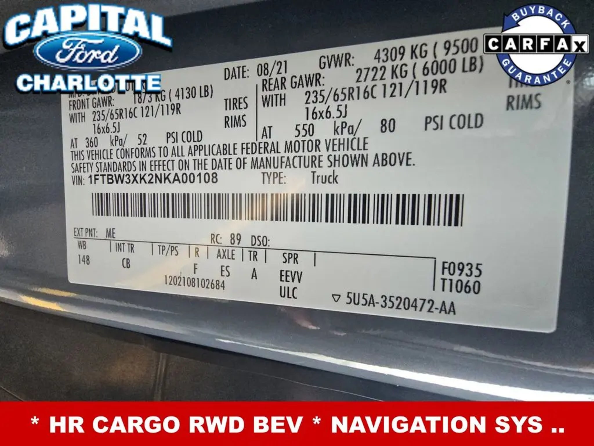 **CLEAN CARFAX**, **360 CAMERA**, **NAVIGATION**, **BLIS (BLIND SPOT INFO SYSTEM)**, **SYNC4**, **FORDPASS CONNECT 4 G WIFI MODE**, **BACKUP CAMERA**, **REVERSE SENSING**, **PRE-COLLISION ASSIST w. AEB**, **POST-COLLISION BRAKING**, **LANE KEEPING SYS**, **TRITON PROTECT CAR CARE SYSTEM**, **TRITON PROTECT SILENT SECURITY THEFT DETERRENT SYSTEM**, 4 Speakers, Auto High-beam Headlights, Auto Start-Stop Switch Delete, Delay-off headlights, Emergency communication system: 911 Assist, Front Fog Lamps, Fully automatic headlights, Heavy-Duty Cargo Flooring, Heavy-Duty Scuff Plate Kit, Intelligent Access w/Push-Button Start, Intelligent Adaptive Cruise Control, Intelligent Speed Assist (ISA), Intersection Assist, Load Area Protection Package, Low Tire Pressure Warning, Order Code 101A, Power Sliding Door, Radio: AM/FM Stereo w/SYNC 4/SiriusXM w/360L/Nav/iACC, Rain sensing wipers, Telescoping Steering Wheel, Tilt Steering Wheel, Traffic Sign Recognition (TSR), Variably intermittent wipers.