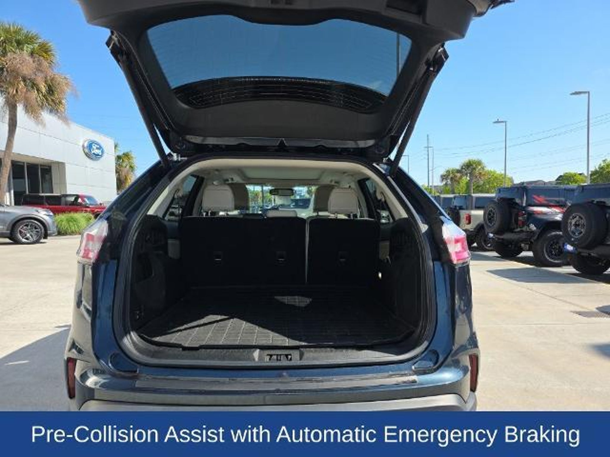 Stone Blue Metallic premium paint gives this 2024 Ford Edge Titanium (VIN 2FMPK4K99RBA29743) with 22,595 miles a sleek, upscale presence, perfectly matched with its refined design and everyday versatility. Riding on 20 wheels with LED headlamps, LED fog lamps, and auto high beams, it delivers a modern look with enhanced visibility. Inside, the cabin is thoughtfully appointed with heated leatherette front seats, a heated leather steering wheel, driver seat memory, and ambient interior lighting that adds a premium touch throughout. A panoramic Vista Roof fills the interior with natural light, while a hands-free liftgate and 110V power outlet add convenience for daily errands or weekend trips. Technology is front and center with a 12 touchscreen powered by SYNC 4, along with a wireless charging pad and garage door opener for added ease. A B&O sound system with 12 speakers delivers rich, immersive audio, while backup sensors and a backup camera help make parking and maneuvering more confident. With its standout color, upscale features, and well-balanced blend of comfort and technology, this Edge Titanium offers a refined and versatile driving experience. ***ONE PREVIOUS OWNER*** Heated Leatherette Front Seats, Panoramic Moonroof/Sunroof, Navigation/Nav/GPS, 12 Center Touchscreen, Forward & Reverse Parking Sensors, Lane Keep Assist, Blind Spot Information System, Pre-Collision Assist with Automatic Emergency Braking, Remote Start, 172 Point Inspection completed by our Factory Certified & ASC Trained Technicians, Recent Oil Change, Vehicle Detailed, 10-Way Power Driver Seat w/Memory & 6-Way Power Front Passenger Seat, Hands-Free Power Liftgate, 20 Bright-Machined Aluminum Wheels, B&O Sound System by Bang & Olufsen w/12 Speakers, Heated Leather Steering Wheel, LED Headlamps w/Auto High Beams & LED Fog Lamps, Wireless Charging Pad & 110V Power Outlet, Heated Power Side Mirrors w/LED Turn Signals, Approach Lighting, & Memory, Chrome Grille, AWD, Equipment Group 300A, Garage Door Transmitter, Rain Sensing Wipers, Speed Control, SYNC 4A w/Enhanced Voice Recognition. Savannah, GA ? J.C. Lewis Ford Built Ford Tough. In Savannah and throughout the Lowcountry, we believe in doing things right ? with integrity, value, and a handshake that means something. That?s why we include over 20 photos and a full walkaround video, so you can take a close look before ever stepping on the lot. At J.C. Lewis Ford in Savannah, we offer transparent deals and dependable vehicles, whether you're headed downtown or back