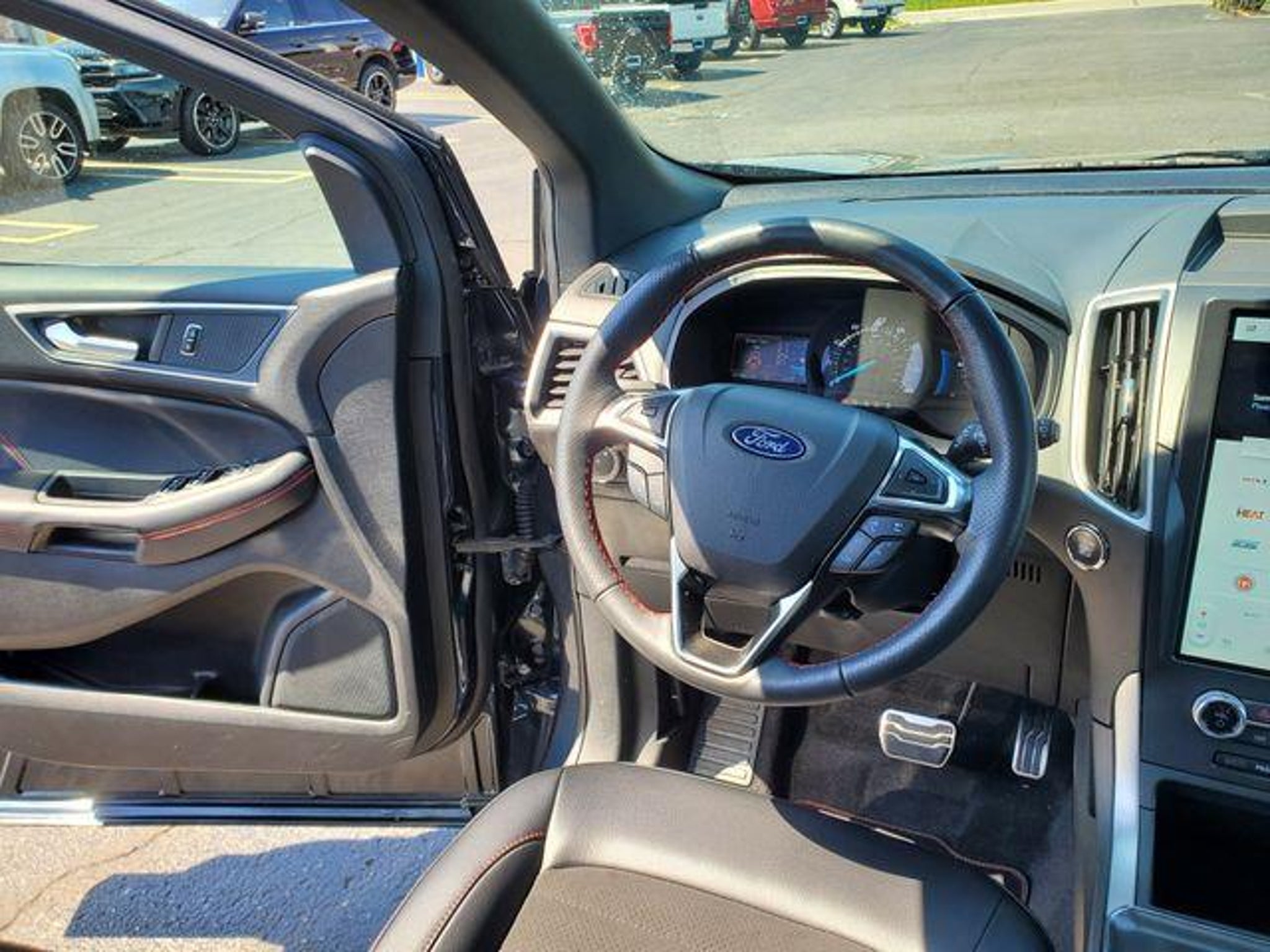 ***** PANORAMIC VISTA ROOF, TWIN-SCRL 2.0L ECOBOOST ENG ***** Keyless Entry, Premium Wheels, Android Auto, Apple Car Play, Bluetooth Hands-Free, Cruise Control, Keyless Start, Remote Engine Start, Satellite Radio, WIFI Hotspot, Heated Seats, Leather Seats, Backup Camera, Blind Spot Monitor, Heated Steering Wheel, Remote Start, Security System, Power Liftgate, Bluetooth, USB Port, Alloy Wheels, Automatic Emergency Braking, Parking sensors, AWD. Blue Metallic 2024 Ford Edge ST Line AWD 8-Speed Automatic EcoBoost 2.0L I4 GTDi DOHC Turbocharged VCT 21/28 City/Highway MPG