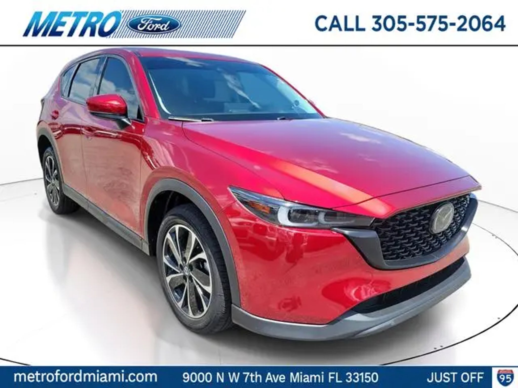 Experience the Metro Ford difference"”serving Miami with transparent pricing and expert Ford knowledge since 1983. This 2022 Mazda CX-5 2.5 S Premium Plus Package in stunning Red is a must-see for any discerning SUV buyer. With its impressive list of premium features, this well-maintained, low-mileage CX-5 offers exceptional value and a truly rewarding driving experience. - 172-Point Inspection Performed - Clean CARFAX History - Leather Upholstery - Sunroof/Moonroof - Bose Premium Audio System - Heated and Ventilated Front Seats - Heated Steering Wheel - Power Liftgate - Rear Bumper Guard - Soul Red Crystal Metallic Paint Powered by Mazda's renowned SKYACTIV® 2.5L 4-cylinder engine and paired with a smooth-shifting 6-speed automatic transmission, this all-wheel-drive CX-5 delivers an exceptional blend of performance, efficiency, and capability. With an EPA-estimated 24 city/30 highway mpg, you'll enjoy impressive fuel economy without sacrificing the responsive handling and confident road manners that have made the CX-5 a segment leader. Inside, the premium cabin of this CX-5 is appointed with high-quality materials and thoughtful design touches. The Bose premium audio system, heated and ventilated front seats, and heated steering wheel elevate the driving experience, while the intuitive infotainment system with Apple CarPlay and Android Auto integration keeps you seamlessly connected on the go. Safety is also a top priority, with features like the Mazda i-Activsense suite of advanced driver-assistance technologies, including Automatic Emergency Braking, Adaptive Cruise Control, and Lane Departure Warning. You can drive with confidence, knowing this CX-5 has your back. Whether you're seeking a versatile family hauler, a premium commuter, or a capable all-weather companion, this 2022 Mazda CX-5 2.5 S Premium Plus Package is an exceptional choice. Experience the difference for yourself and schedule a test drive today. Experience the Metro Ford difference"”serving Miami with transparent pricing and expert Ford knowledge since 1983.