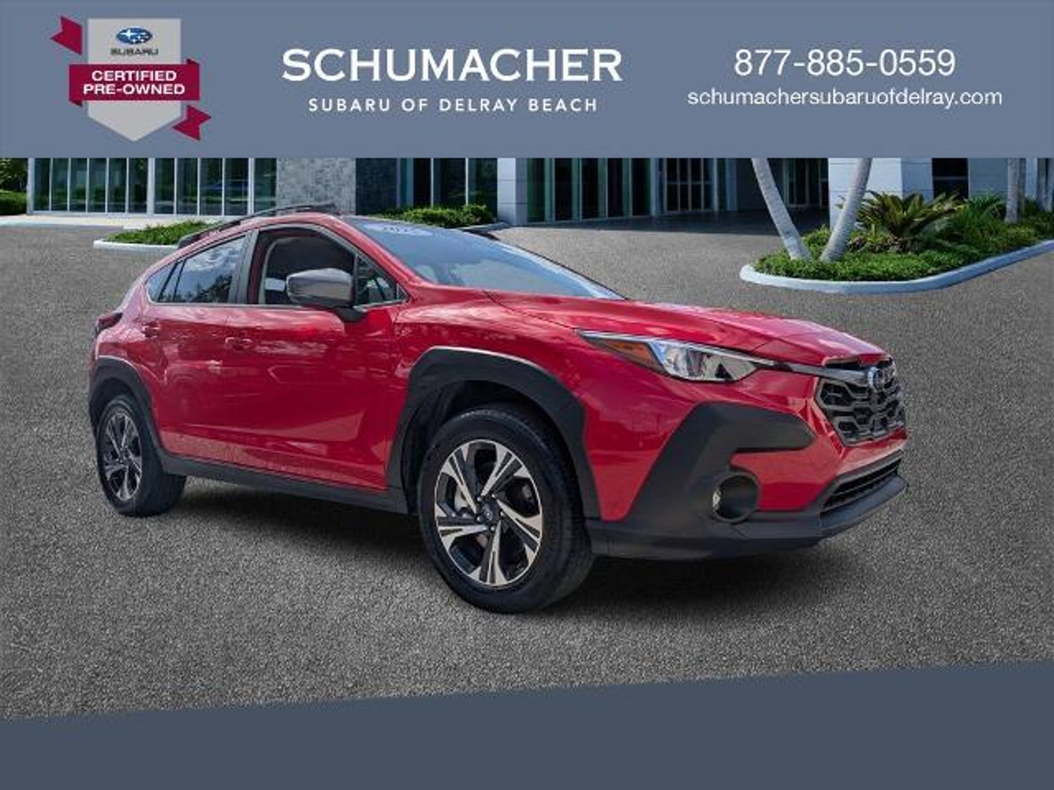 Welcome to Schumacher Automotive Delray, where buying a pre-owned vehicle is more than a transaction, it's joining our family. As a proud, family-owned business located at 2102 South Federal Highway in Delray Beach, Florida, our mission is built entirely around your satisfaction and helping you find the perfect vehicle to fit your life and budget. We understand the importance of trust and transparency in every purchase, and that's why we invite you to experience the Schumacher difference for yourself. Come join the family! 2025 Subaru Crosstrek Premium Pure Red 2.5L 4-Cylinder DOHC 16V AWD Clean CARFAX. CARFAX One-Owner. Act fast?our aggressively priced, high-quality pre-owned vehicles at Schumacher Automotive Delray simply do not last; visit us today at 2102 South Federal Highway, Delray Beach, Florida 33483, or contact us right away to secure yours before it's gone! 561-454-1848.