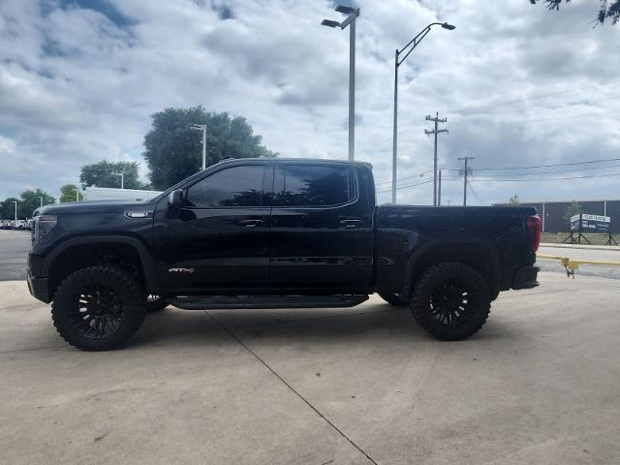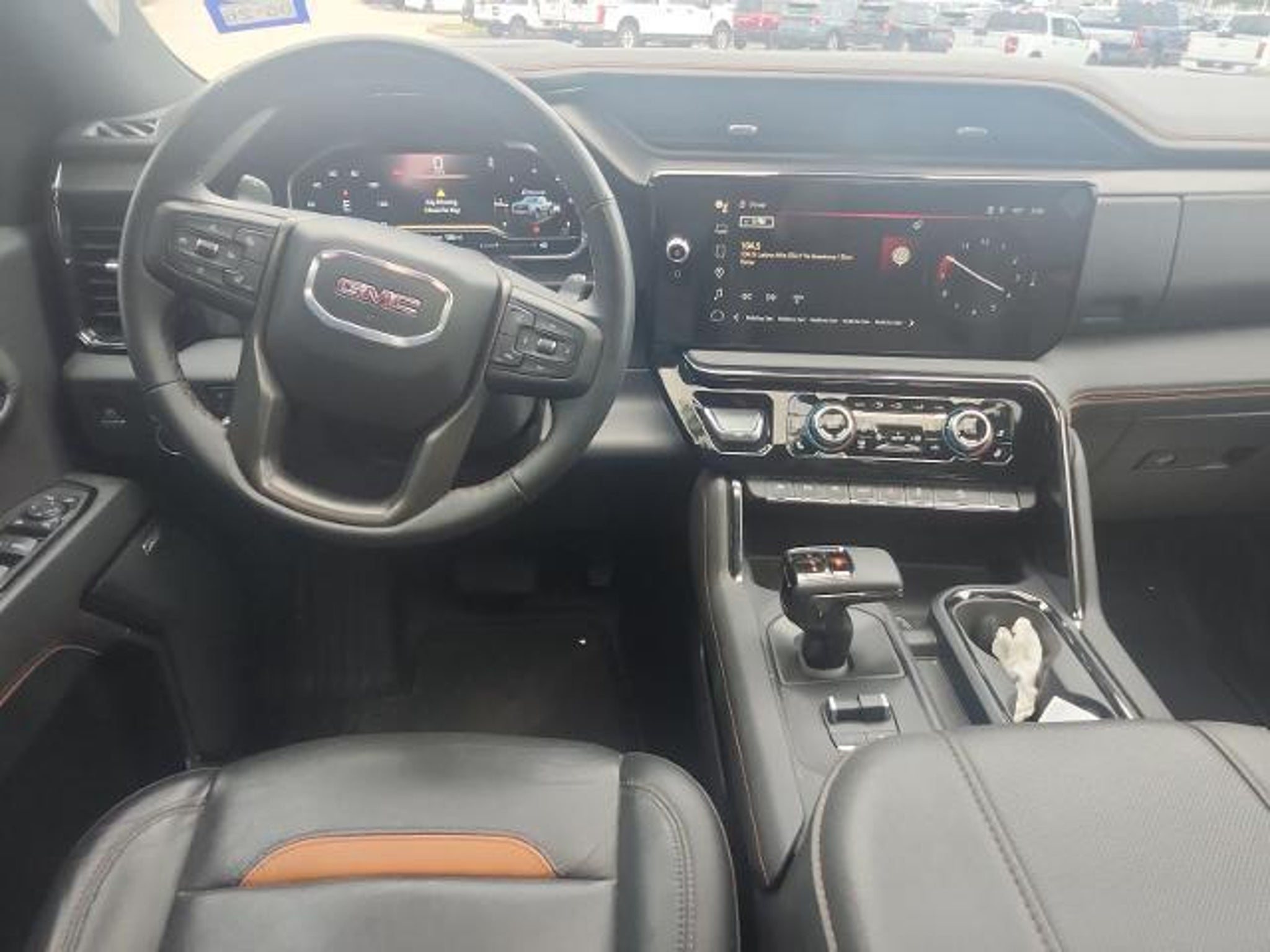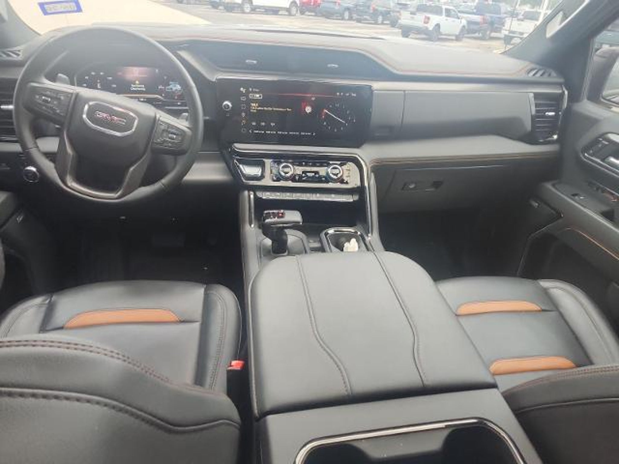 This 2024 GMC Sierra 1500 AT4 in Onyx Black includes the following features: 3.0L I6 10-Speed Automatic 4WD AT4 Preferred Package (Power Sliding Rear Window w/Rear Defogger and Universal Home Remote), AT4 Premium Package (Off-Road High Clearance Step (LPO)), Preferred Equipment Group 4SB (120-Volt Bed Mounted Power Outlet, 120-Volt Interior Power Outlet, 2 Charge/Data USB Ports Inside Center Console, 2 Type-C Charge-Only Rear USB Ports, 2 USB Ports, 220 Amp Alternator, Auto-Locking Rear Differential, Black Chrome Header & Grille Insert Bars, Color-Keyed Carpeting Floor Covering, Deep-Tinted Glass, Electric Rear-Window Defogger, Floor-Mounted Center Console, Front Prem Floor Liners w/Removable Carpet Insert, Front Rain-Sensing Wipers, GMC Connected Access Capable, HD Surround Vision, Heated 2nd Row Outboard Seats, Heated Driver & Front Outboard Passenger Seating, Heavy-Duty Air Filter, Hill Descent Control, Hitch View, In-Vehicle Trailering System App, Integrated Trailer Brake Controller, Keyless Open & Start, LED Cargo Area Lighting, OnStar & GMC Connected Services Capable, Perimeter Lighting, Power Door Locks, Power Front Passenger Windows w/Express Up/Down, Power Front Windows w/Driver Express Up/Down, Power Rake & Telescoping Steering Column, Power Rear Windows w/Express Down, Premium Bose 7-Speaker Sound System, Push Button Start, Rear Cross Traffic Braking, Rear Pedestrian Detection, Rear Prem Floor Liners w/Removable Carpet Insert, Rear Wheelhouse Liners, Red Recovery Hooks, Remote Vehicle Starter System, SiriusXM w/360L, Spray-On Pickup Bedliner w/AT4 Logo, Steering Wheel Audio Controls, Theft Deterrent System (Unauthorized Entry), Trailer Camera Provisions, Trailer Side Blind Zone Alert, Ultrasonic Front & Rear Park Assist, Ventilated Driver & Front Passenger Seats, Wi-Fi Hotspot Capable, and Wireless Charging), Technology Package (Bed View Camera, Multicolor 15 Diagonal Head-Up Display, and Rear Camera Mirror), Trailering Package (Hitch Guidance), 10-Speed Automatic, 4WD, Jet Black With Kalahari Accents Leather, 10-Way Power Driver Seat Adjuster w/Lumbar, 10-Way Power Passenger Seat Adjuster w/Lumbar, 18 x 8.5 Machined Aluminum Wheels, 3.23 Rear Axle Ratio, 4-Wheel Disc Brakes, 7 Speakers, ABS brakes, Air Conditioning, Alloy wheels, AM/FM radio: SiriusXM with 360L, Apple CarPlay/Android Auto, Auto High-beam Headlights, Auto-dimming door mirrors, Auto-dimming Rear-View mirror, Automatic Emergency Braking, Automatic temperature control, Black Sport Step (LPO), Block heater, Brake assist, Buckle to
