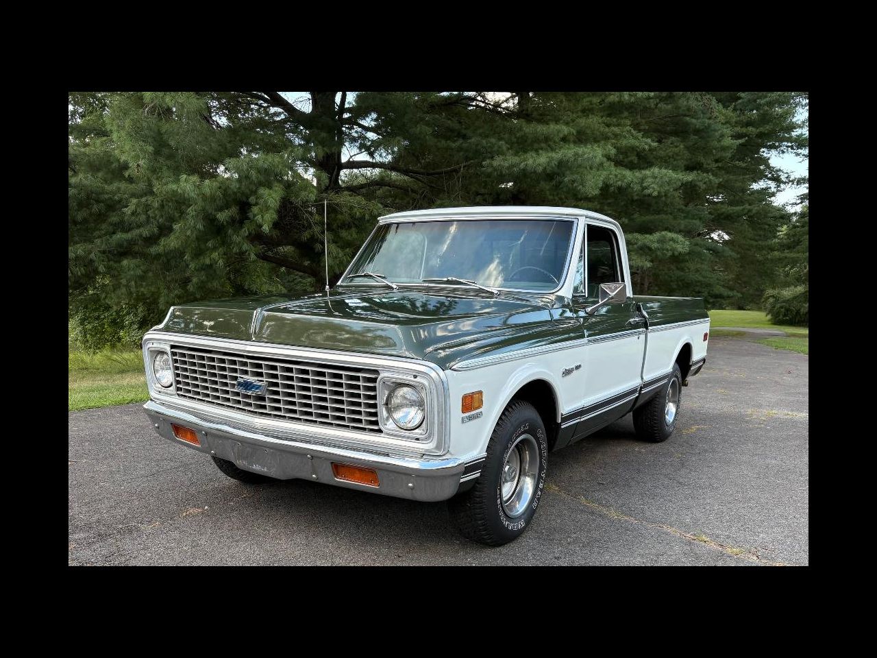 1972 Chevrolet Custom Deluxe short bed pick up, with 350 cu in V8 engine, 4 BBL carb, dual exhaust, automatic transmission, power steering, power disc brakes, optional wood bed, Chevrolet deluxe rally wheels, raised white letter tires. and sliding rear window. This truck runs and drives really great and is a hard to find short bed. This truck just came back from body shop, with all new body work and paint job along with new wood in bed with stainless strips. Also new carpet and seat cover. All cars are available for sale WORLDWIDE! We are available to help arrange shipping for you to any destination!! CHAMPION PRE-OWNED CLASSICS 118 Amanda Court Harpers Ferry WV 25425 703-727-4935 Barry@championclassics.com