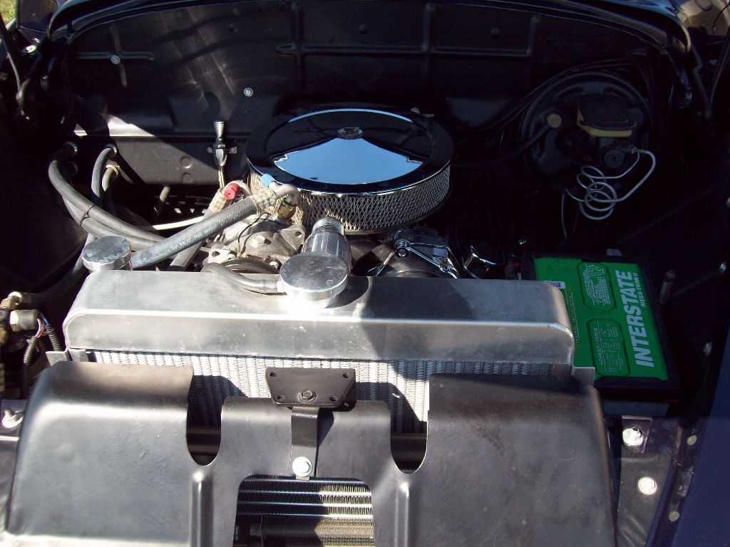 Beautiful restoration. Buick Regal sub-frame with Black satin finish. Brand new 350ci Chevy V8 crate motor. PW, PS, A/C, Serpentine belt system, air horn, tilt & telescopic wheel, bucket seats, tinted glass, electric cowl vent. True-Blue Metallic clear coat paint job. Engine compartment nicely detailed. Torque Thrust aluminum wheels. 3 inch stainless exhaust. Automatic transmission on column. General Motors rear-end.