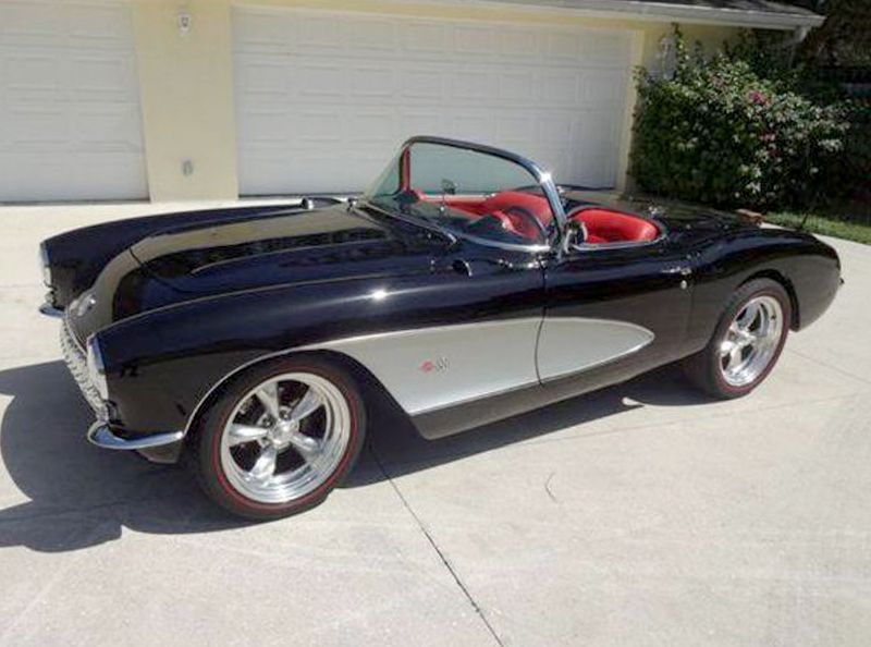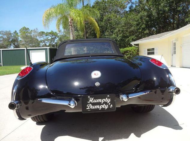 1956 Chevrolet Corvette Convertible. The '56 Model Year was the first restyle of the first generation corvettes. It was about making a more powerful looking car to go with the true muscle in the engine bay. That means power bulges in the hood, rounded fender lines, and a subtler hint of a taiklfin. This Corvette is a frame-off restoration that originally came with a 265 CID V-8 Engine that was replaced with a 350 CID V-8 that is mated with a 3-Speed Automatic Transmission. The engine and transmission were both new and now have less than 2,000 miles on them since being finished. During the rebuild many new items were upgraded and installed that include an aluminum radiator, quick fuel carburetor, new wiring and harness, signal seeking radio with Ipod functionality, new and rechromed trim, rebuilt the gauges, new fuel lines and gas tank, redone the brake lines/wheel cylinders & shoes, new glass windshield and frame with original side glass, and even the exhaust system was replaced. This car has a beautiful Onyx Black exterior with Silver Coves Paint Theme that still shines and looks to be in show quality. The interior is completed in Al Knoch Red Vinyl Buckets that flows well with the Flawless Black Paint. Also a new black Coffman Soft Top Frame and Covering have been installed. This car is turnkey ready and ready-to-roll. Only 3,467 Corvettes were produced in 1956 and only 810 were black. The current owner has owned this beauty for the past 10 years and is finally willing to let someone else enjoy it after driving it. Optional equipment include: AM/FM Radio, Bias Ply Tires, White Walls, Hub Caps, Manual Top, Seatbelts, Vinyl Interior, This Beautiful Corvette is Investment Quality! Priced to sell @ $159,900. Call Mark (941) 204-9415 Humpty Dumpty's Classics / Sarasota, FL Shipping quote available.