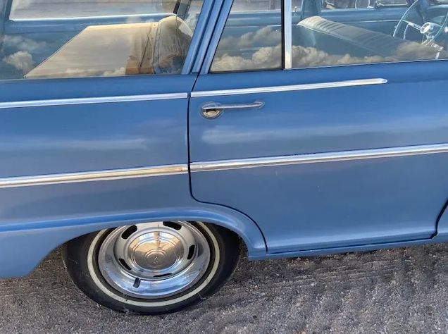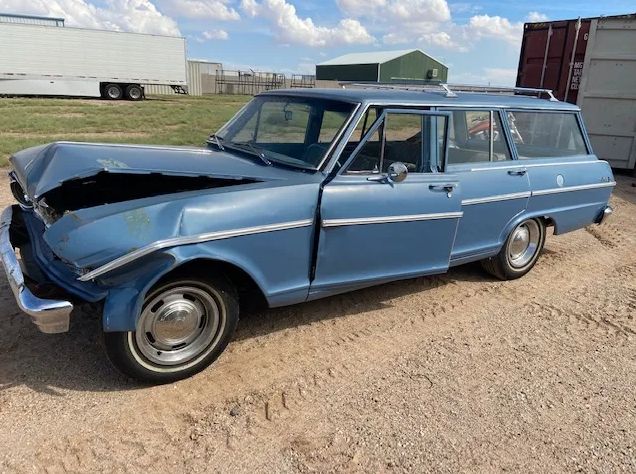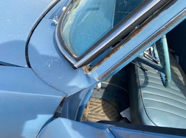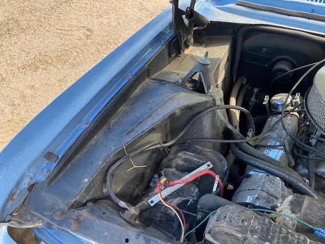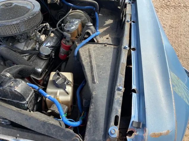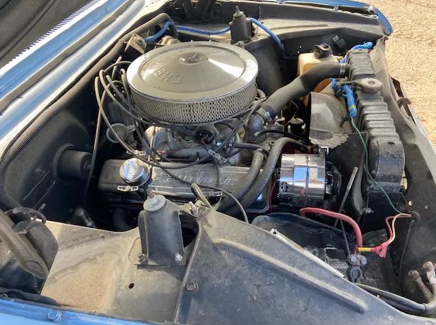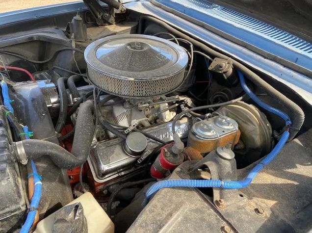Front damage up and over the bumper as pictured, needs a pull for cowl / door alignment plus sheet metal as shown. Power is supplied by a 350 V8 w/ TH 350 trans and a 10-bolt rear end. This is a nice, solid little cruiser project with clean sheet metal, floors, and a very nice interior