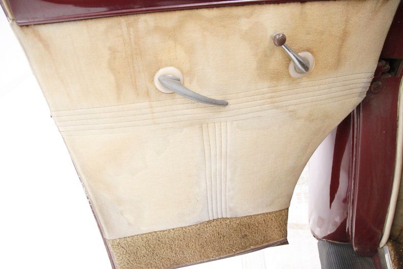 A 239ci V8 complete with dark gloss gray/blue cylinder heads grace this lightly patined engine bay. A single Holley 2-barrel carburetor sits atop the intake manifold and we note the oil bath air cleaner has been removed but can be found in the trunk along with the optional fender skirts. Bolted to the back of this sought after mill is a 3-speed manual transmission which sends power back to a 3.54 geared rear axle.