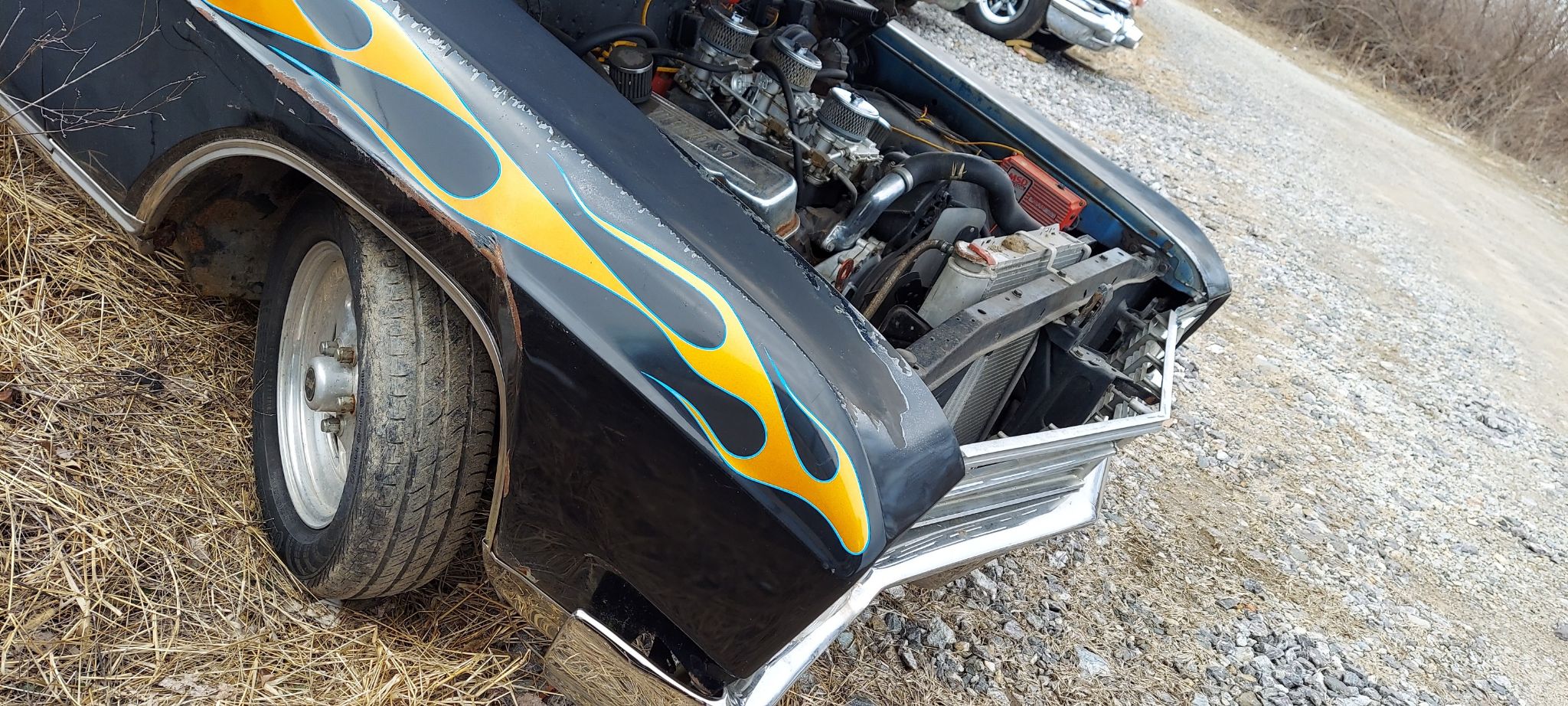 Solid car with thinning paint above the belt line. The car runs and drives as is but needs a little TLC to be mint. It had a minor parking lot incident that dented the fender and front bumper on the right side.No frame damage. Use it as it is or make or change the fender and bumper I have the parts to fix it.
