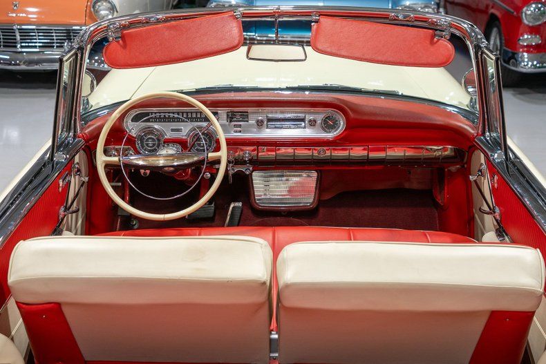 This 1957 Pontiac Bonneville Convertible is an absolute beauty and loaded with fantastic options! Starting in the middle of 1956 and continuing through September, the Pontiac Motor Division of General Motors was undergoing a changing of the guard, so to speak, with numerous soon-to-be influential leadership changes taking place from the top on down. Famed automotive executive Semon "Buckie" Knudson was appointed as Pontiac's General Manager in July 1956. Then in September 1956, Elliott M. "Pete" Estes was named Pontiac's Chief Engineer and John Z. Delorean (yes, that Delorean) was tapped to lead Pontiac's Advanced Engineering department. With Knudson, Estes, and Delorean at the reigns, Pontiac began to lean into a performance-oriented tilt that would shape the GM marque for the years to come. The first performance-oriented model was announced on December 2, 1956"a fuel injected convertible known as the Star Chief Custom Bonneville Convertible that was named for the famous Bonneville Salt Flats raceway that was the site of numerous land speed records. When the Bonneville made its eventual showroom debut on January 11, 1957, it was released as a limited edition "dealer use only" model. In addition to Pontiac's new performance-oriented tilt in 1957, Buckie Knudson's influence extended to Pontiac's new modern design and style. Known as "Star Flight" styling, Knudson's new '57 Pontiacs were significantly influenced by America's infatuation with the aerospace industry and the Space Race. Likely the most identifiable Star Flight style change was the Knudson's removal of "Silver Streak" hood bands which, adorned Pontiac hoods, in some form, since 1935. In addition to the removal of the Silver Streaks, the 1957 Pontiacs received all-new front end treatment including a flatter, more modern-looking hood mounted above a new massive chrome bumper and grille. New missile-shaped side trim was added to all Pontiac lines in 1957 as well. In the rear, the '57 tail fin design was flatter but also longer, which gave a more pronounced look. The new-look '57 Pontiac taillights were completely restyled now sporting an immense amount of chrome and a "V" shaped profile. When new, the 1957 Bonnevilles had a factory MSRP of nearly $6,000 which was nearly double the price of the standard Star Chief convertibles. In total, a mere 630 Bonneville Convertibles were produced which makes this particular example quite a rare piece of American automotive history. Powering this '57 Bonneville is a Fuel Injected 347 Cubic Inch V8 engine that was said to have created a whopping 315 horsepower when new. The 347 Fuelie V8 is backed by a Hydro-Flight Hydra-Matic Automatic Transmission that makes this extremely rare 50s convertible an easy car for anybody to take for a spin around the block. Exhaust exits the Fuel Injected Pontiac powerplant via a dual through-bumper exhaust system that generates a wonderful throaty sound out the rear. Being that the Bonneville sat atop the Pontiac hierarchy in 1957, this car comes absolutely loaded with options! With power steering, turning this 4,000+ pound performance beast is almost effortless and you can squeeze into a tight space at the local car show or drive-in with ease. Power brakes are another welcome feature of this Bonneville since it makes stopping much easier especially with all of that extra horsepower under the hood. The white vinyl power convertible top is in wonderful condition and it easily goes up and down with the simple pull or push of a button mounted neatly under the dash. Riding on a set of wide whitewall bias-ply tires, each paired with a deluxe Pontiac full wheelcover, this '57 Bonneville Convertible exudes the high style of a quintessential 50s cruiser. The chrome and brightwork around the exterior of this Pontiac Bonneville is in excellent condition and adds to the eye-catching look of this convertible. The exterior has been correctly refinished in a beautiful two-tone paint scheme consisting of Kenya Ivory and Bonneville Red, just how this car came when it rolled off the factory line back in 1957. The interior on this 1957 Bonneville Convertible is outstanding! The front and rear bench seats have been correctly reupholstered in Red and Ivory two-tone leather. The interior on this Bonneville also comes loaded with creature comforts! Power windows are a welcome addition on this Bonneville so you don't have to work too hard cranking down the windows on a gorgeous summer day. An 8-way power adjustable front seat is also a wonderful addition so that you can ensure that you'll be cruising in comfort. This Bonneville is also equipped with a switch-operated power antenna which is another cool fifties era novelty. The padded dash, upholstered door panels, carpeting and steering wheel are all in great shape and appear to be in their stock configuration. The instrument cluster is outfitted with a 120 MPH speedometer, temperature gauge, battery gauge, oil pressure gauge, and fuel gauge. The dash is finished with the heater controls, a clock, and a push-button Wonderbar AM radio. Whether you're buying your first classic car or you're adding to your existing collection of classic Pontiacs, this 1957 Pontiac Bonneville Convertible would make an excellent choice. Give Ellingson's a call today at 763-428-7337!