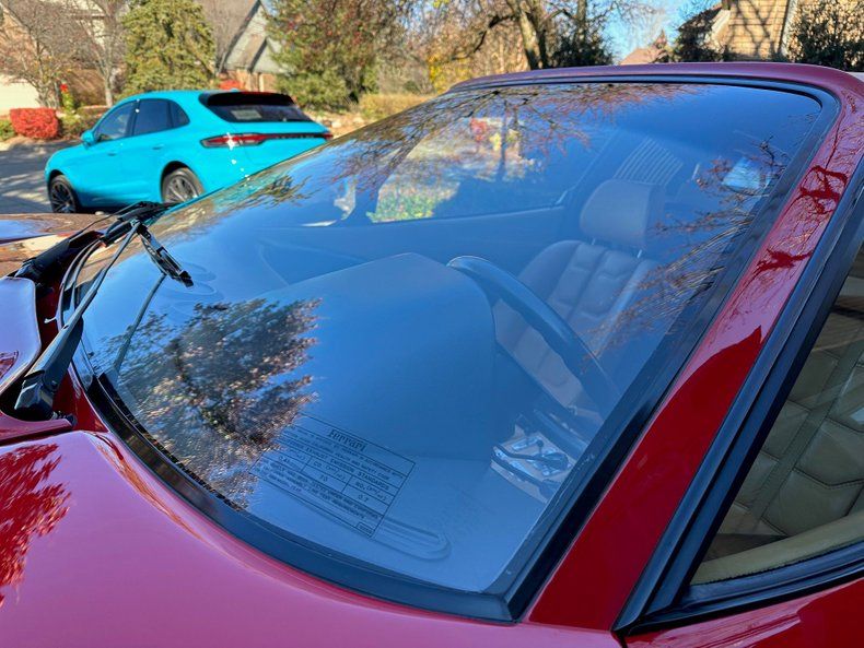 Our seller has provide exceptional care during his nine years of stewardship. This Ferrari features classic factory original Rosso Corsa red exterior paint with black grills and black GTS removable roof over a wonderfully original Beige Connolly leather interior. The exterior boasts a no hit body and excellent factory applied original paint, the interior condition is excellent as well showing slight normal wear on the driver bolster. Mechanically, the car runs, drives, shifts, handles and brakes "as new". All componentry works including cold air conditioning. The car retains its original window sticker, original books, complete original tools and roll, original jack never used still in the bag, original dealer installed AM / FM cassette.