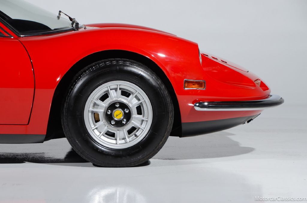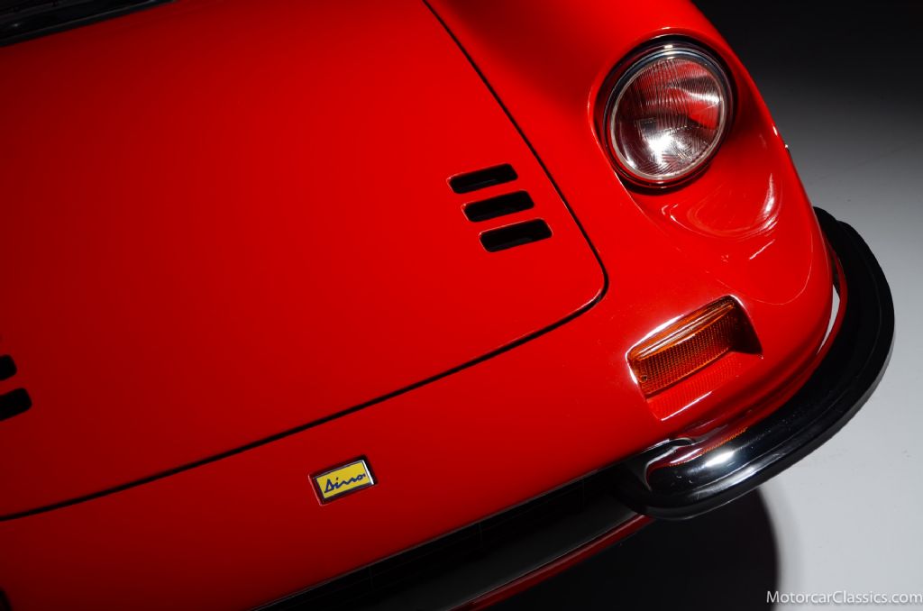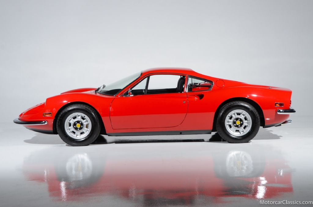1972 Ferrari Dino 246 GT #3418 for sale! Motorcar Classics is proud to present this stunning 1972 Dino 246GT featured in Rosse Chiaro with black interior. It is reported to have been in only two collections during the past four decades.It has been restored with new paint, body gaskets, excellent glass and brightwork. The interior has fresh leather seats and mouse hair dashboard, correct carpets, power windows and the original radio. The engine compartment and undercarriage are fully detailed. Mechanically the Dino has excellent mechanicals, correct compression, a smooth shifting transmission, and replaced shocks and ball joints. Includes books and tools. Everything is right with this Dino and it will earn its new owner pride of place in any concours or touring event.