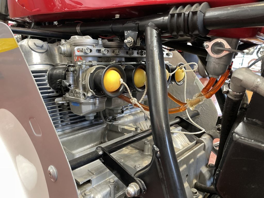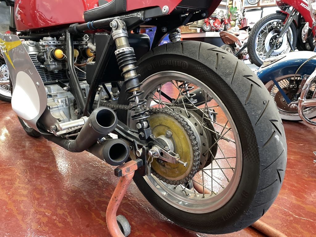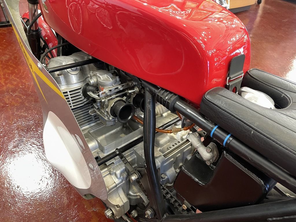Fresh Honda livery paint on fairing, tank and seat exude the heyday of the vintage era. And it sounds amazing!