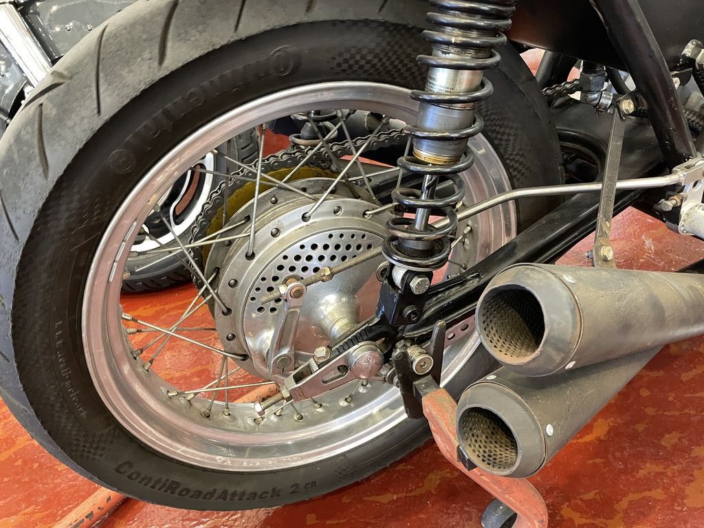 A 12,000-rpm tachometer and a Smiths oil pressure gauge sit in a custom panel. With no odometer, true mileage is unknown, though only a handful of miles have been added under present ownership.