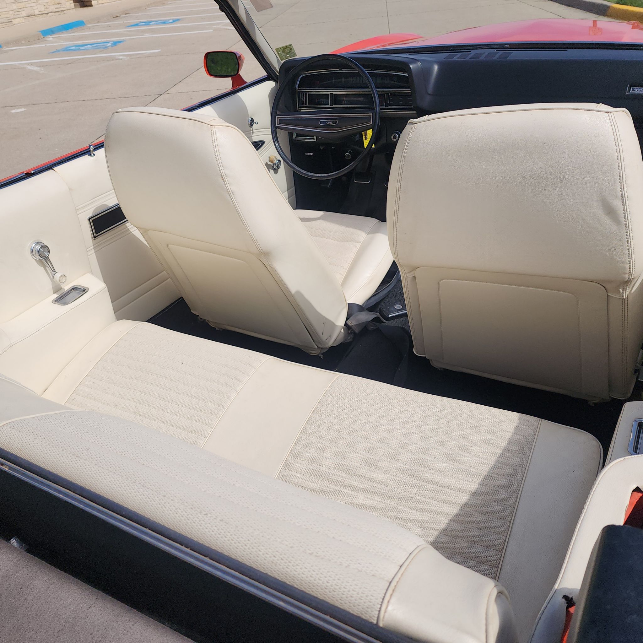 Check out this Very Rare 1970 Torino GT Convertible. It is equipped with a 429 – 4 V- Engine with a 4-speed transmission, Power Steering and Power Disc Brakes. The Speedometer reads only 36000 miles. This car came to us from an estate, and it was kept inside in storage for a very long time. The tires are old non radials and look like the originals. The exhaust system was shot, and I found a complete exhaust system and it fits perfectly. The exhaust tips are new genuine old stock Ford. It is equipped with a genuine Ford AM-FM radio, and it plays excellent. Another pleasant surprise is the factory ribbon tach. The comfort weave bucket seats are in like new condition. It has new plugs and a recent tune up. The top is original but because of the long time inside storage, it is in excellent condition. The wheels are the chrome styled steel chrome type with center caps and trim rings. All and all this is a very rare car with complete documentation in a Marti Report.