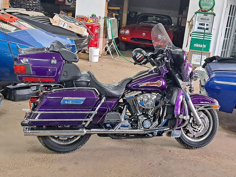 Hard to find this 100th Anniversary Edition Bike in rare Concord Grape, (Purple). Very low miles, only 15,000mi. Always garaged and taken care of.